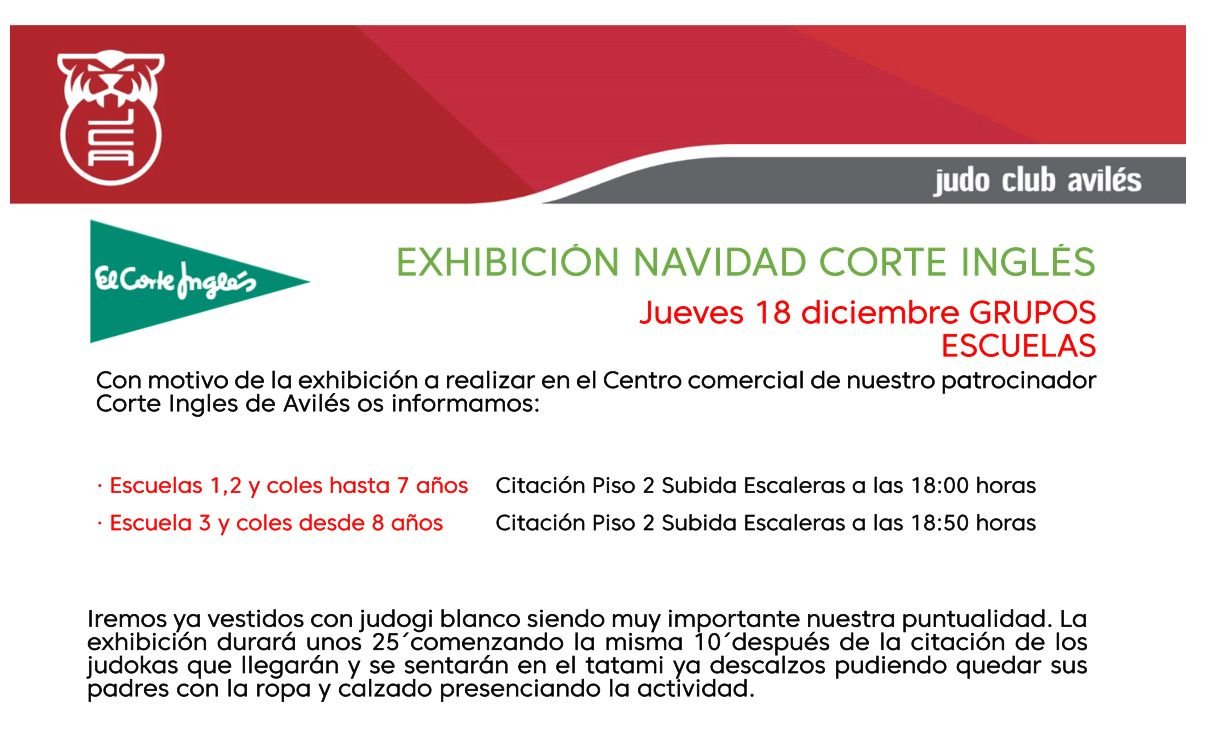 El Corte Inglés (Avilés)Con motivo de la exhibición a celebrar en el centro comercial de nuestro patrocinador El Corte Inglés de Avilés os informamos: